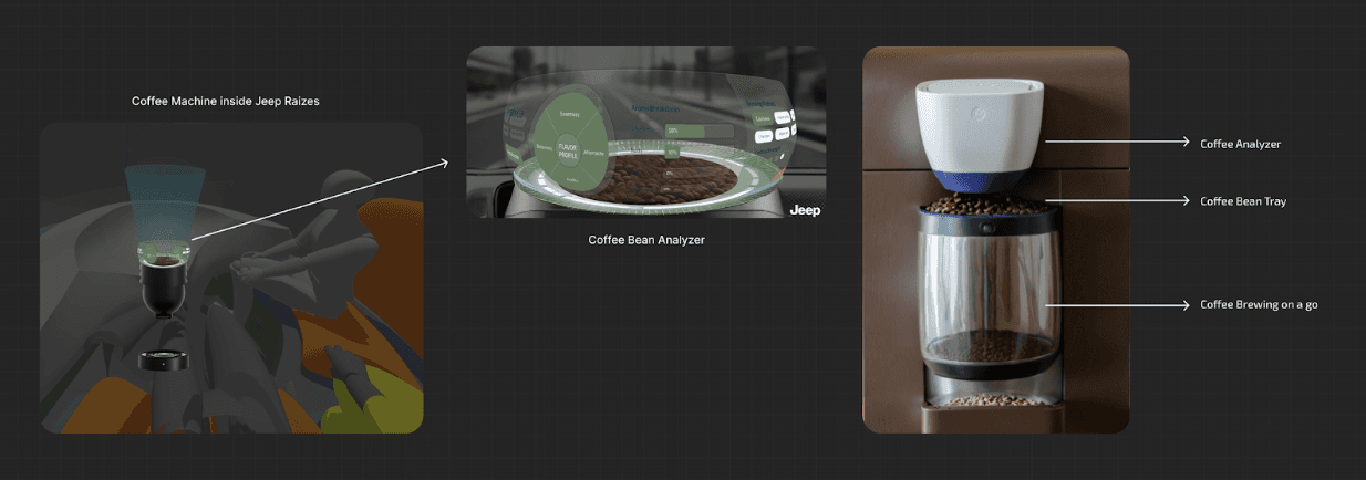 This project reinforced the importance of interdisciplinary collaboration, as I worked closely with architects and industrial designers to bring the Raizes concept to life. I gained experience in integrating sustainable design elements, like rainwater harvesting and eco-friendly materials, into a futuristic vehicle. I also deepened my understanding of incorporating cutting-edge technologies, such as autonomous driving and AR interfaces, to enhance user experience and efficiency. The hands-on design process allowed me to refine features based on real-world feedback, ensuring the concept was not only innovative but practical and user-centered. Through the Jeep Raizes project, I leveraged my skill of clear client communication, managing project progress, and adjusting designs to align with both business goals and user expectations—skills I continue to apply in my design career